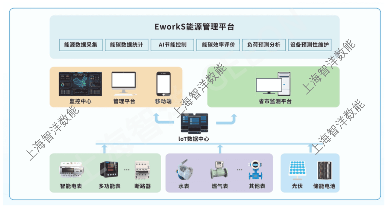 针对上述痛点,上海智洋数能打制硬件+数据传输+平台使用三位一体的AIoT能源管控平台,建立从底层到上层决策的完整能源办理闭环。
