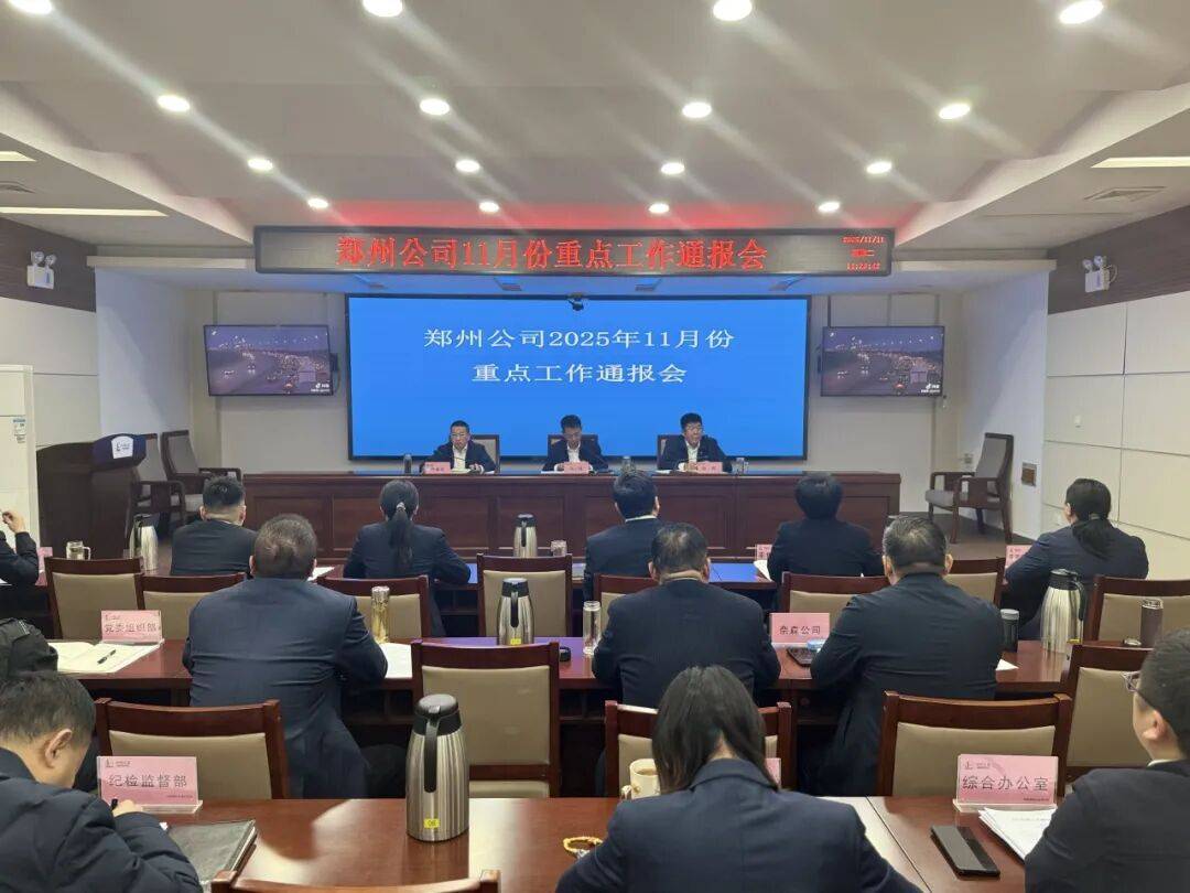 11月11日,郑州分公司召开11月份沉点工做传递会,落实省公司11月份沉点工做讲评会会议,总结工做,阐发形势,摆设11月份以及收官沉点使命。