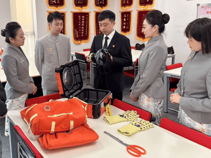 正在防护设备实操环节,机组人员针对“航空平安防护箱”和“防火阻燃袋”展开专项,内容涵盖面罩的佩带体例、教员先对防护设备的操做规范进行一一演示,再针对设备的佩带、操做步调及留意事项开展手把手讲授,严酷查验机组人员对防护设备操做的熟练度取应急措置的规范性,确保全员熟练控制相关技术。