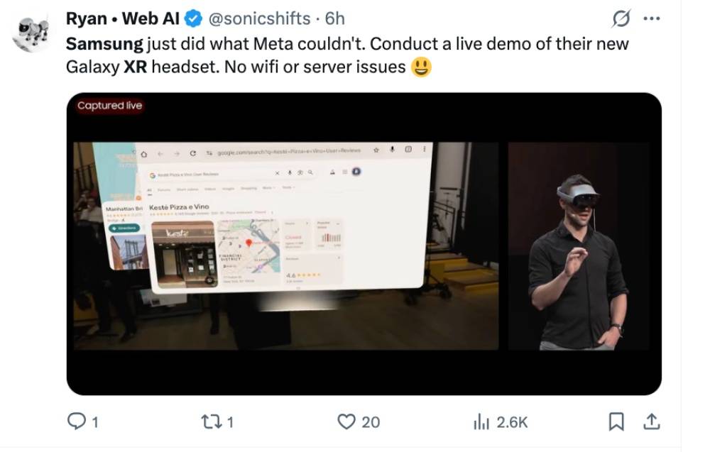 还有网友开打趣说三星做到了Meta没有做到的工作,现场演示很是丝滑没有“WiFi或办事毛病”。