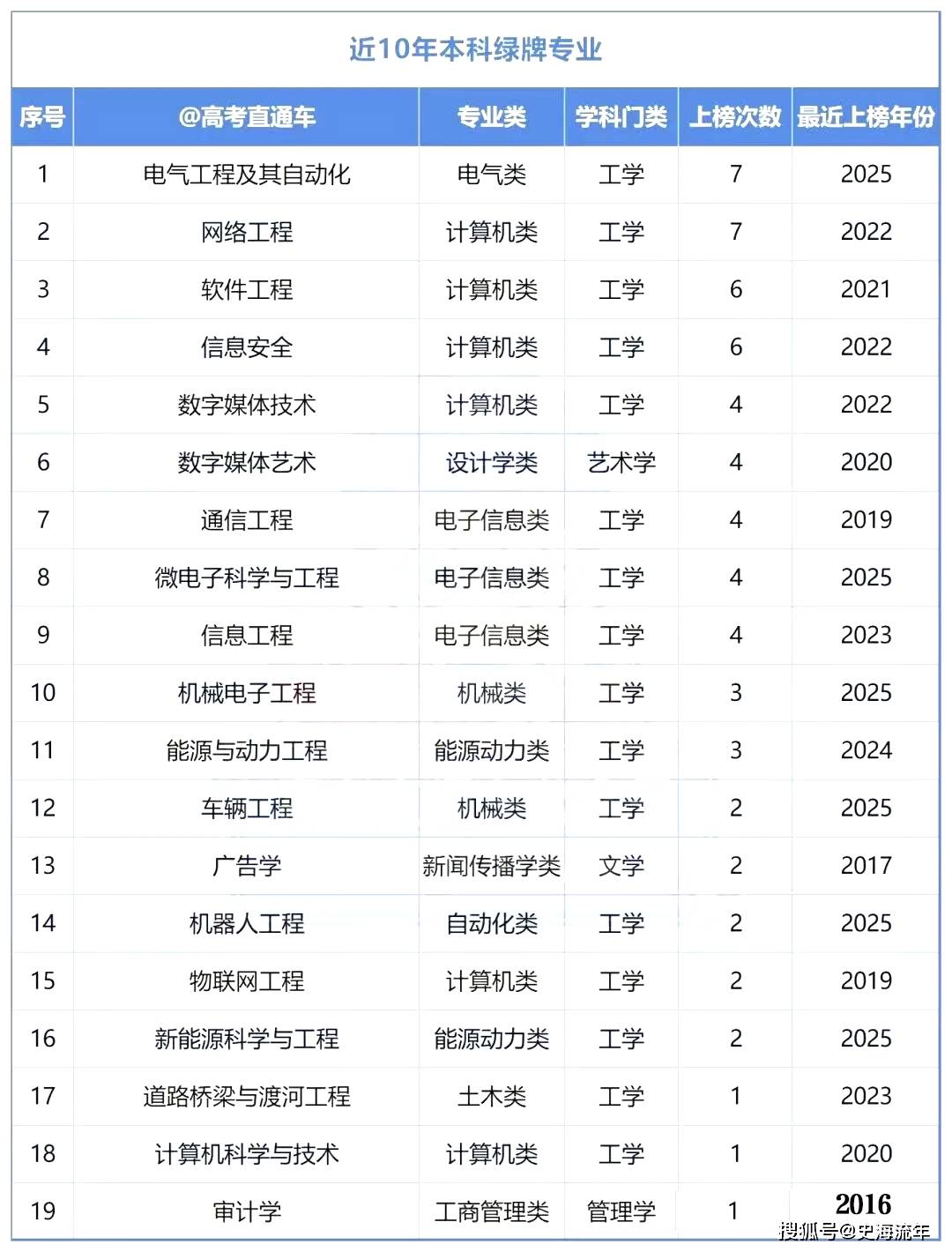 数学手艺、数学艺术、通信工程、微电子科学取工程、消息工程五个专业,各有4次进入绿牌专业行列,并列第五位。机械电子工程、能源取动力工程两个专业,各有3次上榜,排名并列第十位。